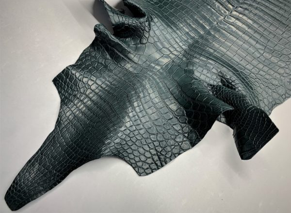 種類:クロコダイル 品種:ナイルクロコダイル Crocodylus niloticus 産地:ジンバブエ 仕上げ:マット カラー:ダークグリーン